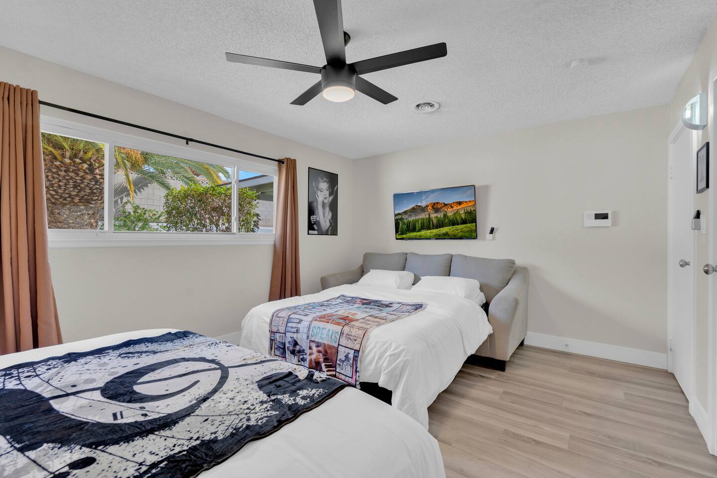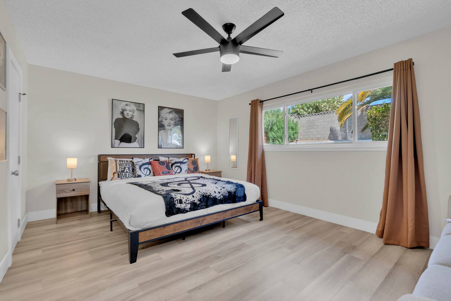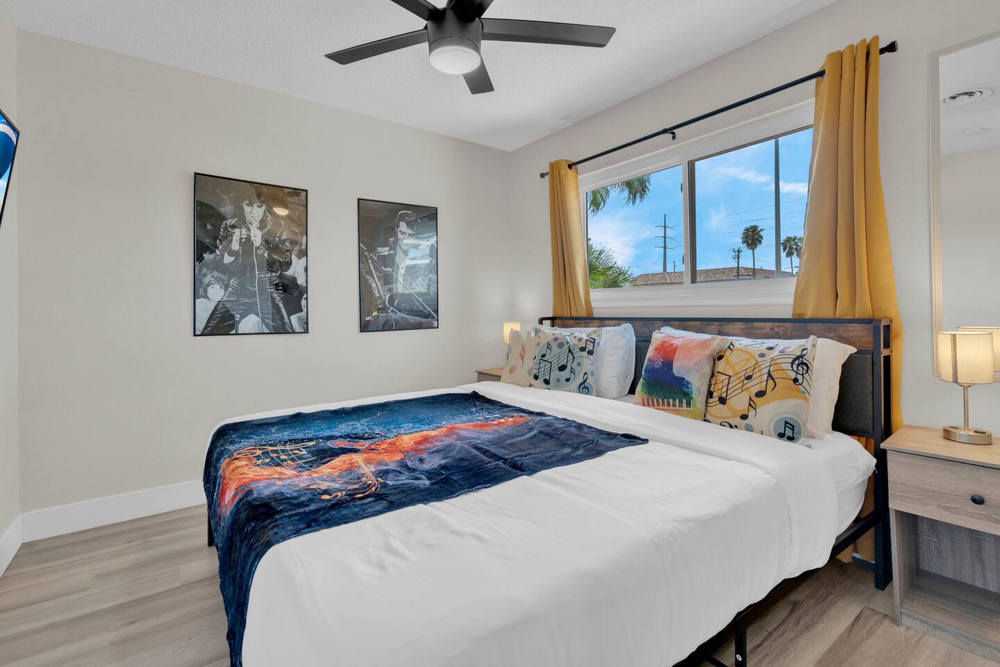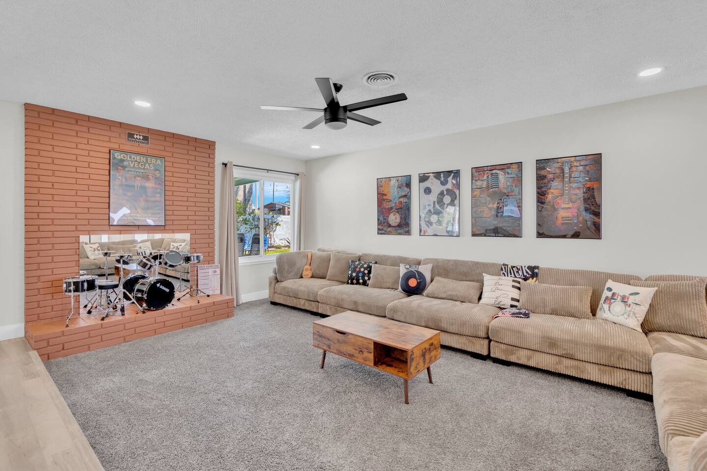 Step into the rhythm of Vegas history at this iconic mid-century home once owned by legendary drummer Buddy Rich. Just minutes from the Strip, this retro retreat features themed rooms honoring Elvis, Sinatra, and Marilyn Monroe. Unwind in the pool, hot tub, or enjoy a backyard BBQ. With a musical memorabilia, it's a nostalgic escape in the heart of Las Vegas.
